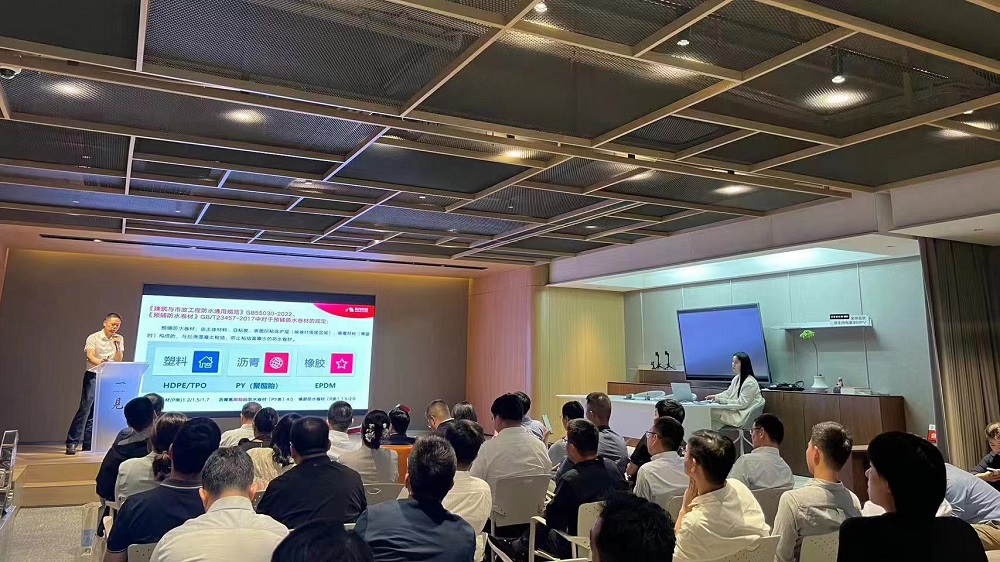 東方雨虹工建集團(tuán)江蘇公司總工程師徐方賓作《建筑底板防水新材料應(yīng)用分析》主題分享,他圍繞《建筑與市政工程防水通用規(guī)范》,系統(tǒng)分析底板HDPE、底板R類橡膠卷材、底板PY類瀝青卷材及底板其他類卷材預(yù)鋪反粘應(yīng)用的方案及優(yōu)劣勢(shì)。他強(qiáng)調(diào),通過改進(jìn)防水材料的抗穿刺、抗沖擊等性能及防水施工工法,可以去掉不必要的結(jié)構(gòu)層次,增加防水層的可靠性。